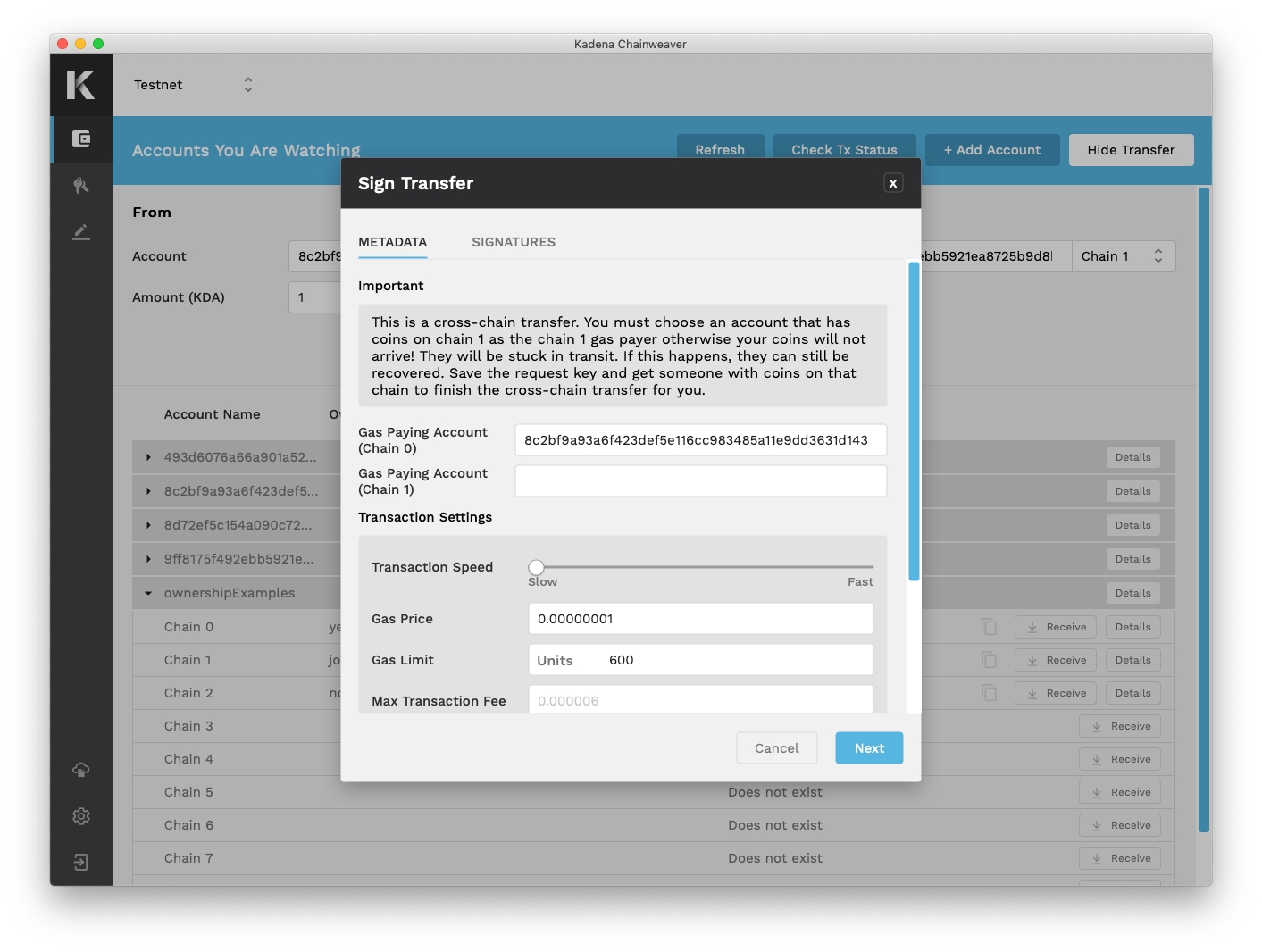 This will open the Sign Transfer dialog which allows you to configure transaction settings.
