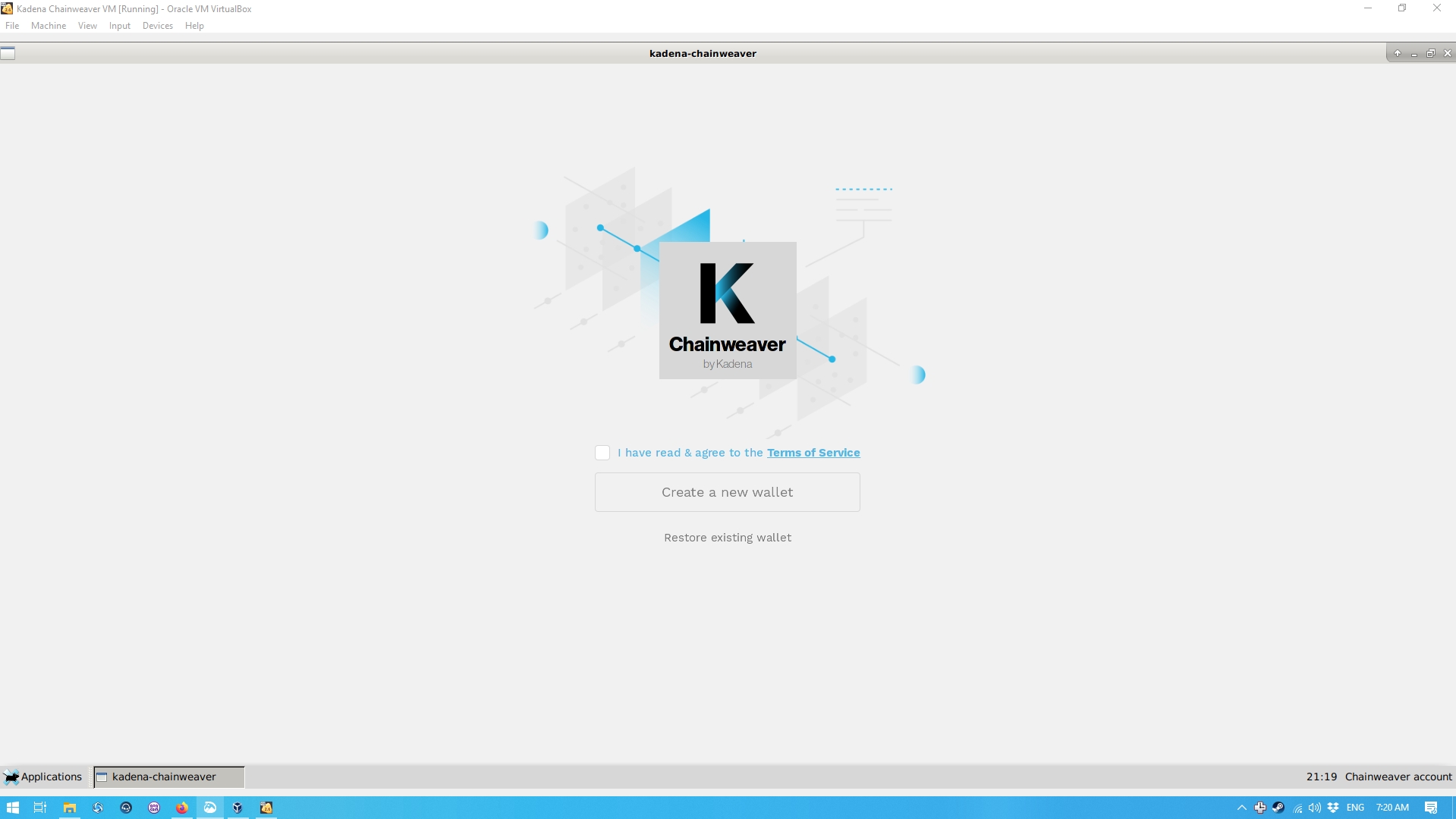 This will start the virtual machine and it will boot like a normal computer. Eventually you should see Chainweaver like this.