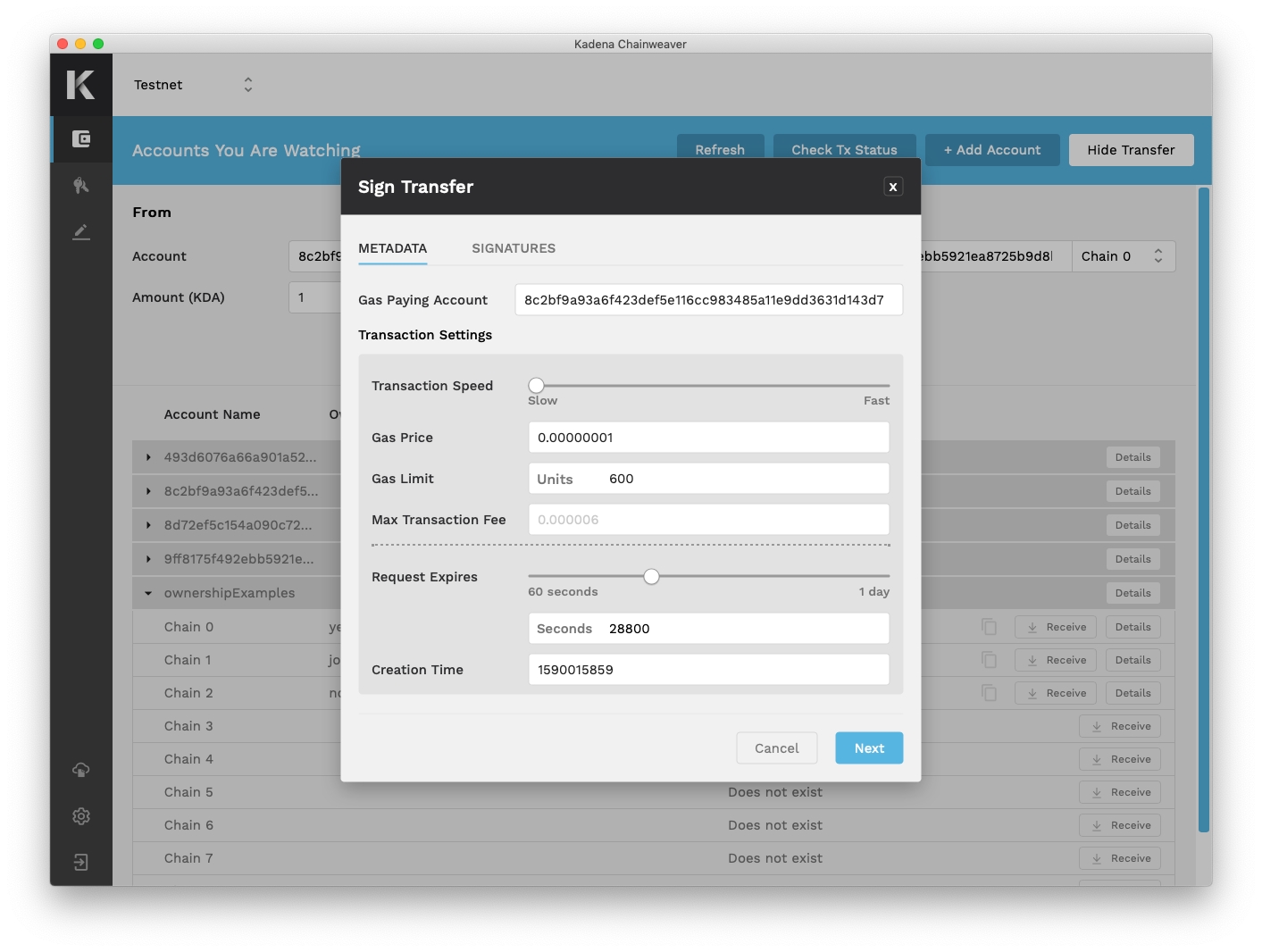 This will open the Sign Transfer dialog which allows you to configure transaction settings.